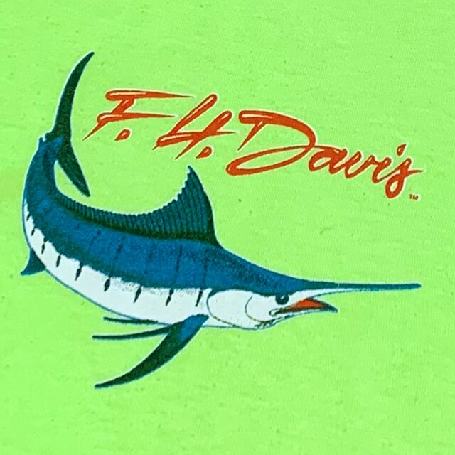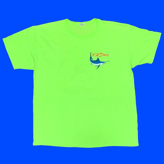 発色の良いネオンライムカラーでカジキのプリントが
