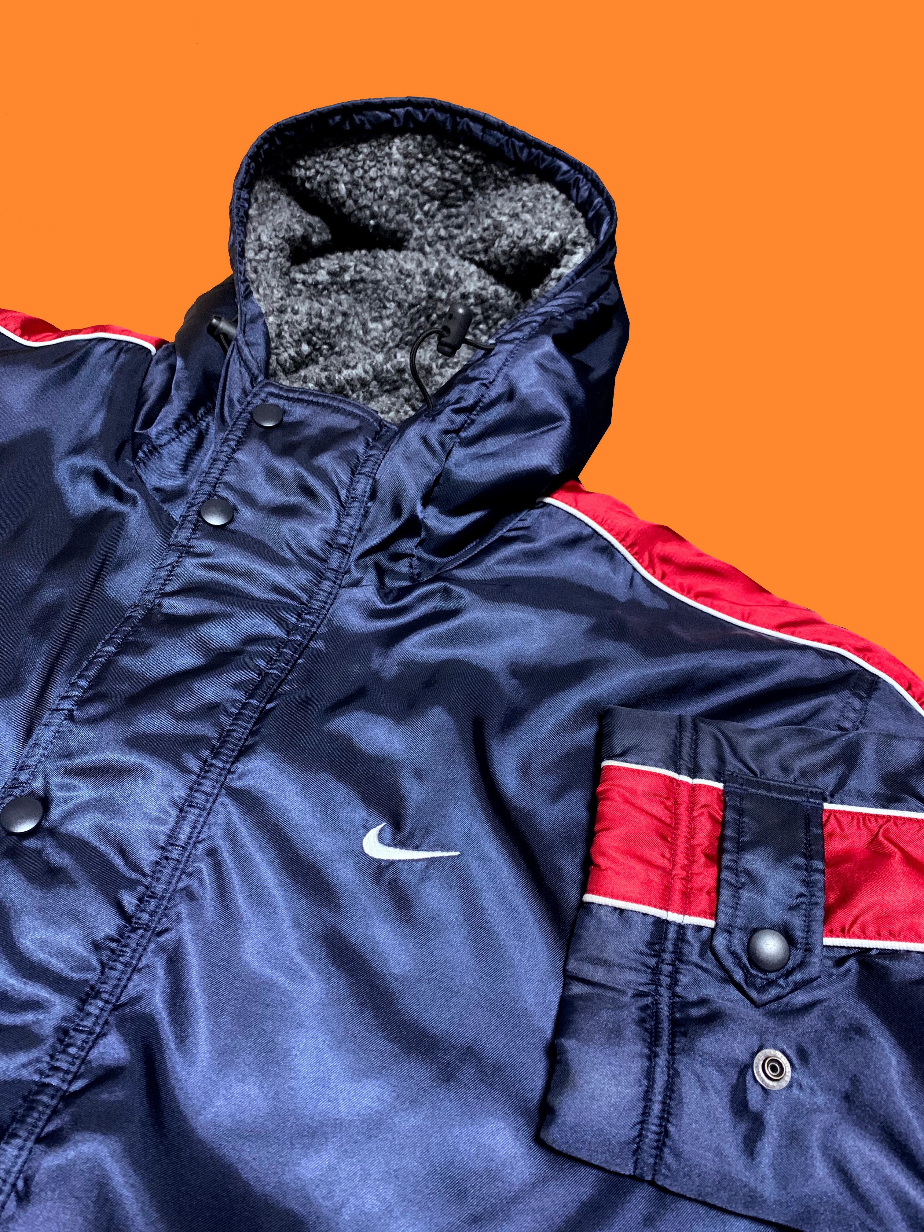 ナイキのベンチコートでフード付き、内側がボアでウエスト下あたりから